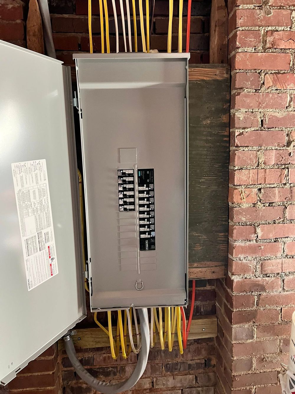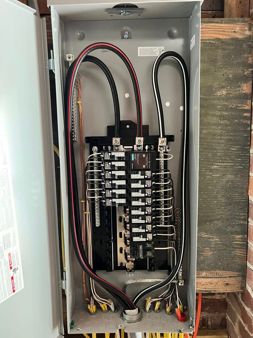 Installation of a modern, code-compliant breaker panel with increased capacity, improved safety technology, and proper circuit labeling.